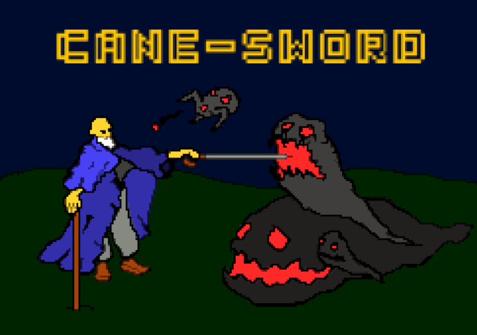An old hero who retired from his adventures a long time ago was ambushed by dark spirits! But luckily the cane he was using for walking was actually a cane-sword, a cane containing a hidden sword, also called "swordstick".
